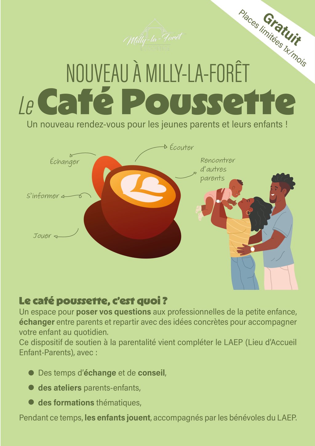 🍼 Échanger, écouter, jouer, s’informer : un espace chaleureux pour poser vos questions aux professionnelles de la petite enfance, rencontrer d'autres parents et repartir avec des idées concrètes.
