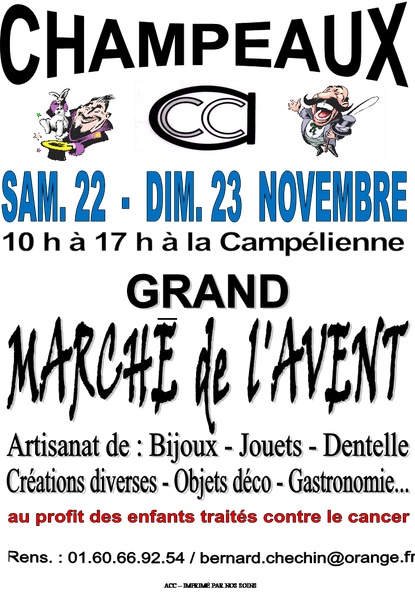 Marché de l'Avent, organisé par l'association ACC en faveur des enfants hospitalisés à l'IGR de Villejuif à la salle des fêtes de Champeaux
