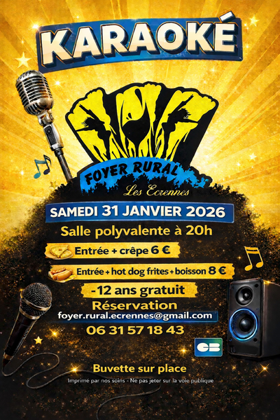 Soirée karaoké à noter dans vos agendas ! Afin d’optimiser la gestion des denrées alimentaires et de mieux vous satisfaire, la réservation est recommandée !